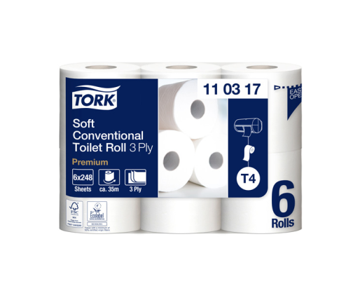 - Tualetinis popierius TORK PREMIUM EXTRA SOFT T4, 110317, 9.9cmx34.72m, 3 sl., 6 vnt./pak.