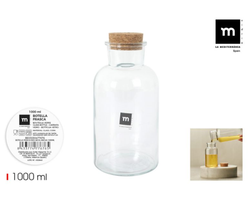 - Butelis, su kamščiu, stiklas, 1 l, vnt