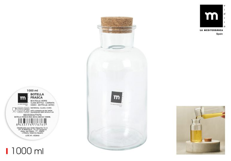 Butelis, su kamščiu, stiklas, 1 l, vnt