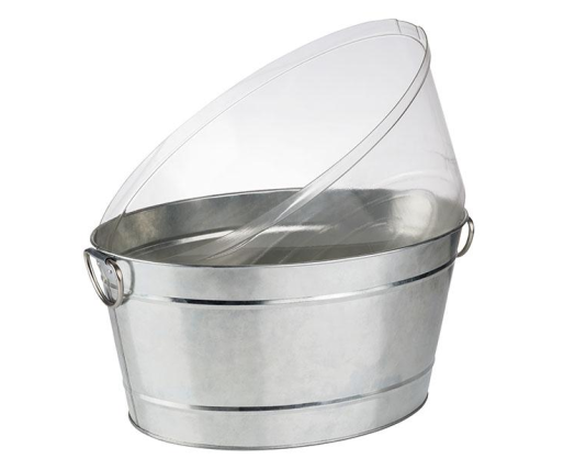 Dubuo yra ovalo formos, su rankenėlėmis ir plastikiniu įdėklu Medžiaga: metalas/PVC plastikas