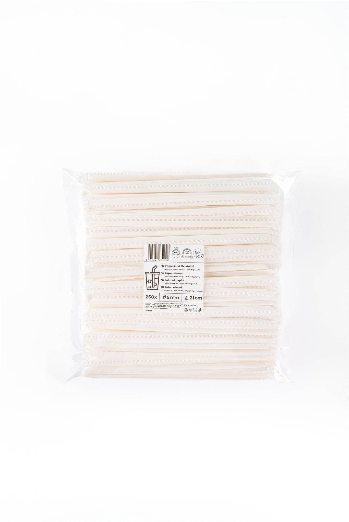 Popieriniai šiaudeliai, balti, 6 mm, L 21 cm, 250 vnt