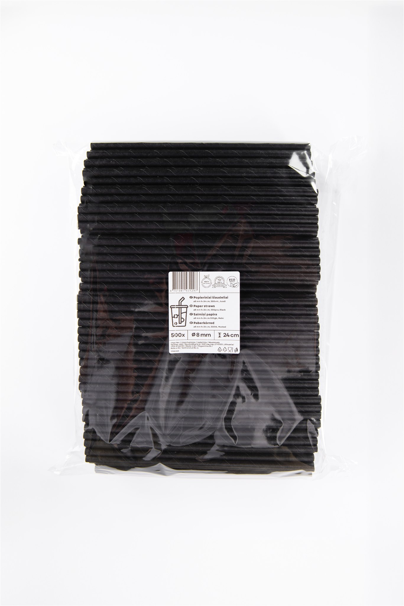 - Popieriniai šiaudeliai, juodi, D 8 mm, L 24 cm, 500 vnt