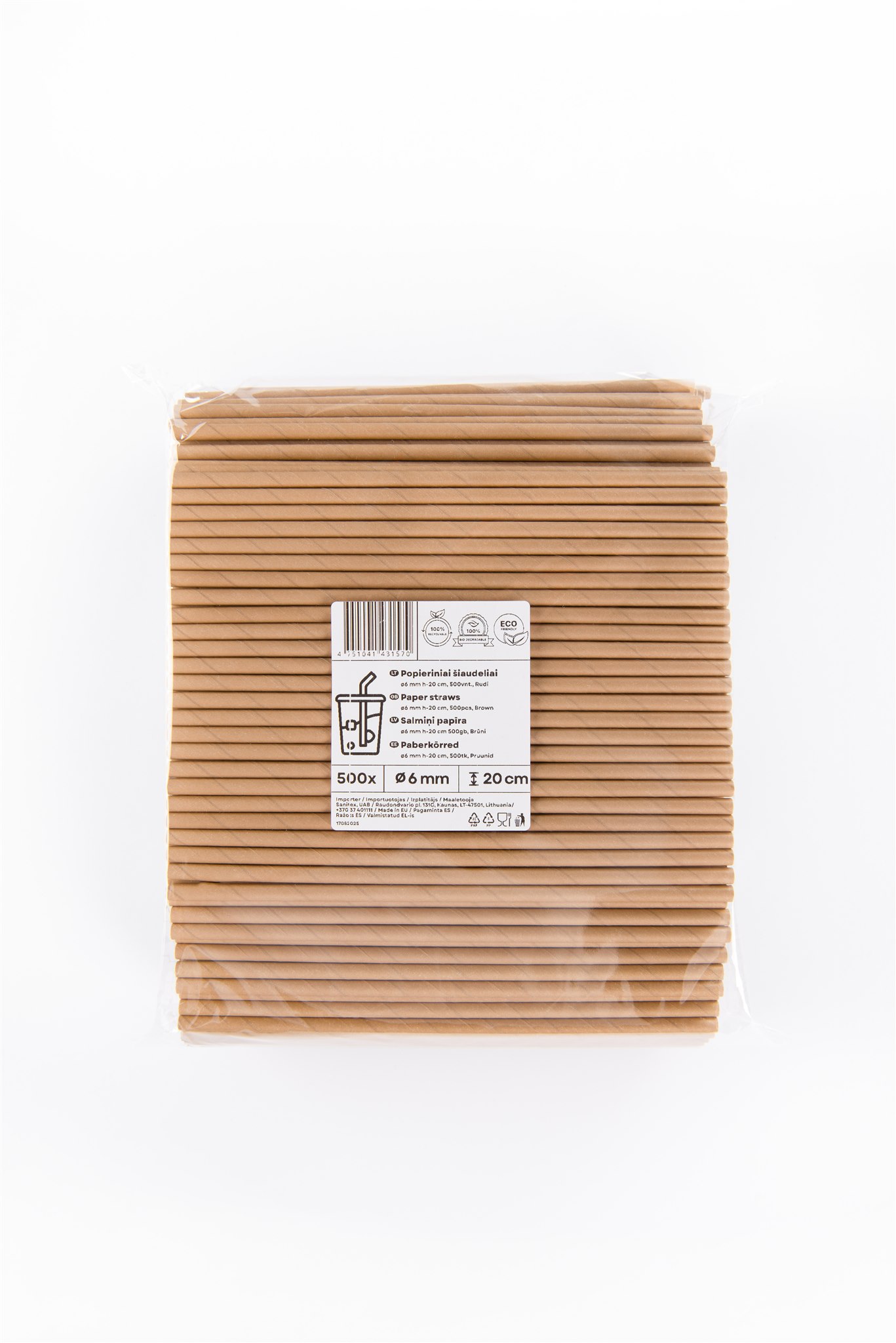 - Popieriniai šiaudeliai, rudi, 6 mm, L 20 cm, 500 vnt