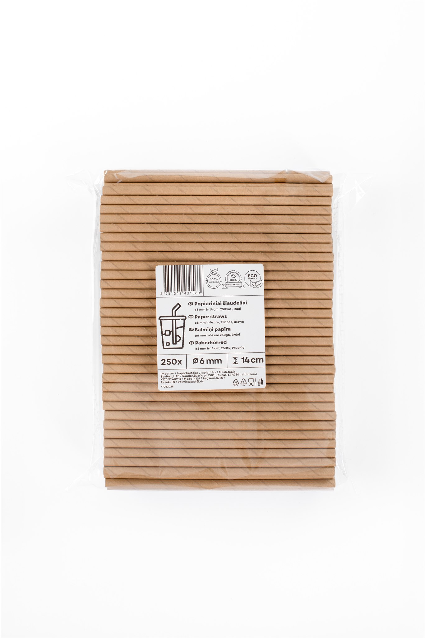 - Popieriniai šiaudeliai, rudi, D 6 mm, L 14 cm, 250 vnt