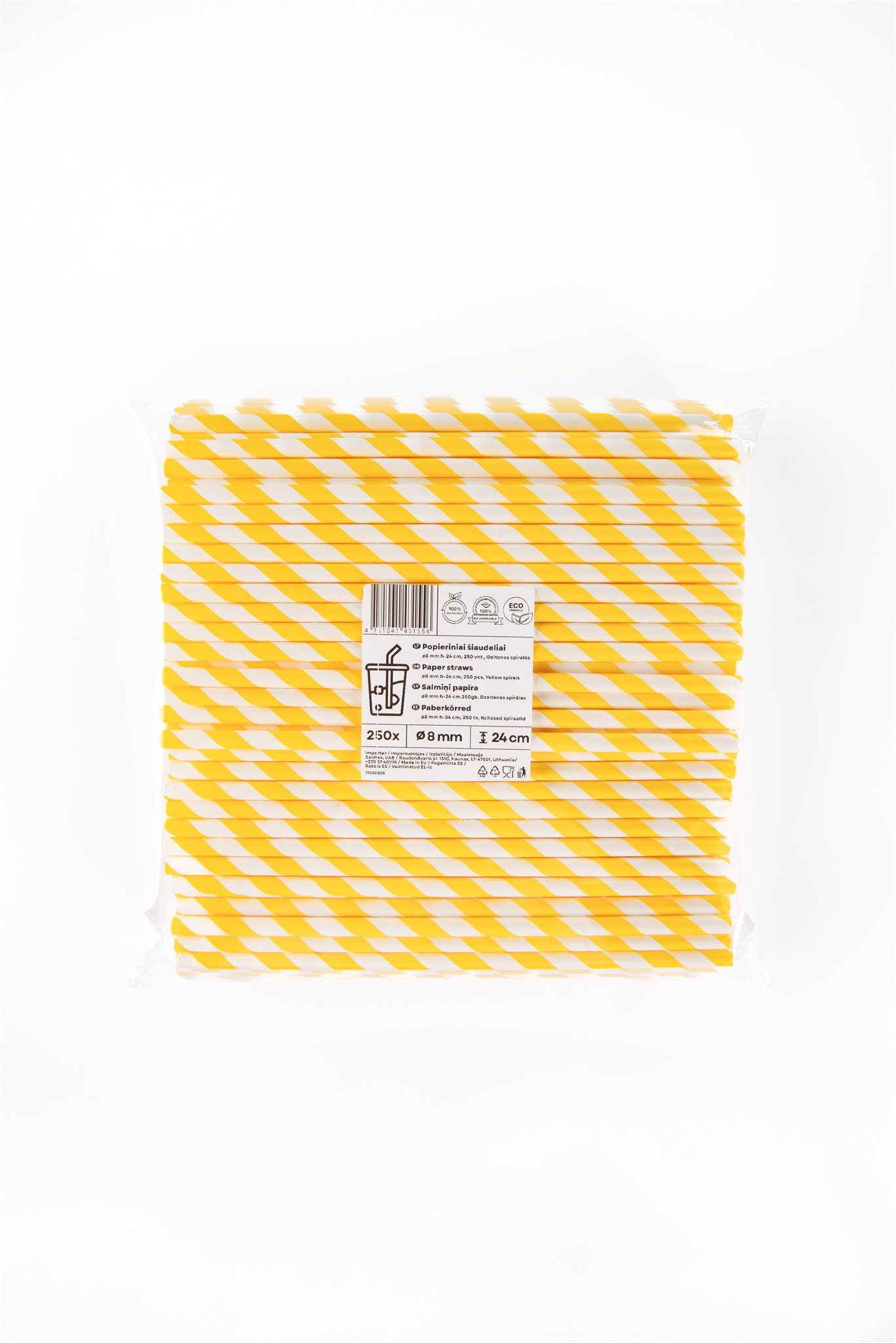 - Popieriniai šiaudeliai ZigZag, geltoni/dryžuoti, D 8 mm, L 24 cm, 250 vnt
