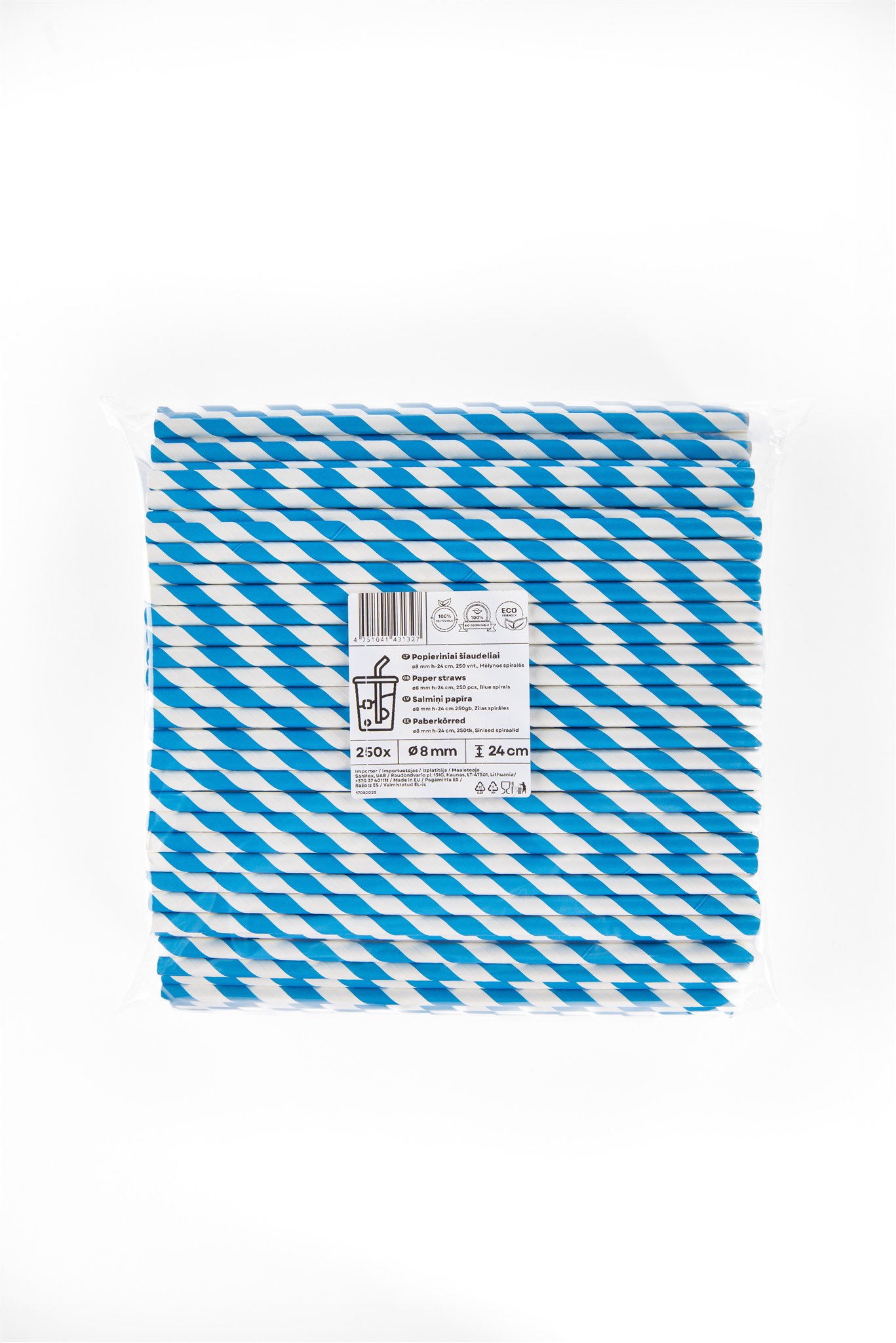 - Popieriniai šiaudeliai ZigZag, mėlyni/dryžuoti, D 8 mm, L 24 cm, 250 vnt