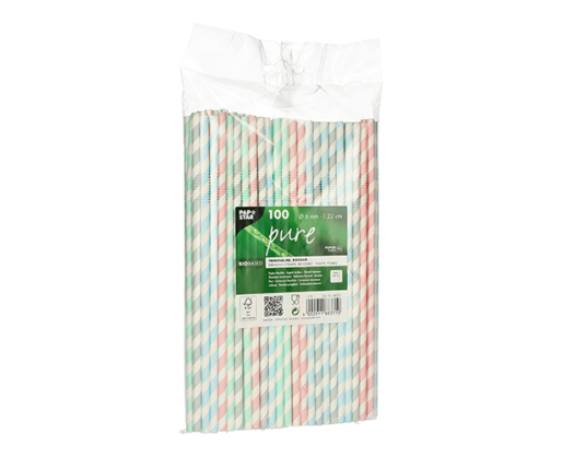 - Šiaudeliai PAPSTAR, popieriniai, dryžuoti, lankstūs, D6 mm x 22 cm, 100 vnt