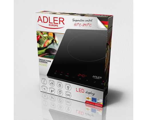 - Adler Hob AD 6513 Number of burners/cooking zones 1, LCD Display, Black, Induction 313602