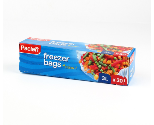 - Maišeliai produktų šaldymui PACLAN, su sąvaržėlėmis, 3 l, 30 vnt.
