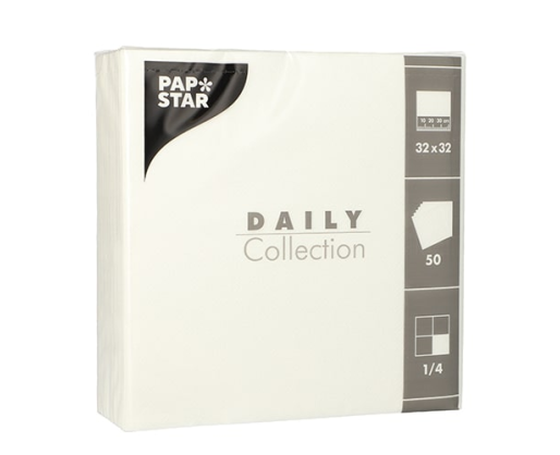 Servetėlės DAILY, 1/4 lankstymo, 32 x 32 cm, baltos spalvos, 50 vnt.