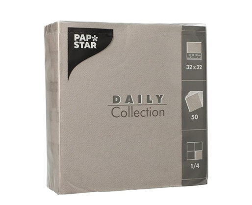 Servetėlės DAILY, 1/4 lankstymo, 32 x 32 cm, pilkos spalvos, 50 vnt.