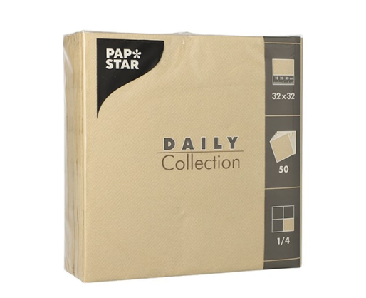 Servetėlės DAILY, 1/4 lankstymo, 32 x 32 cm, smėlio spalvos, 50 vnt.
