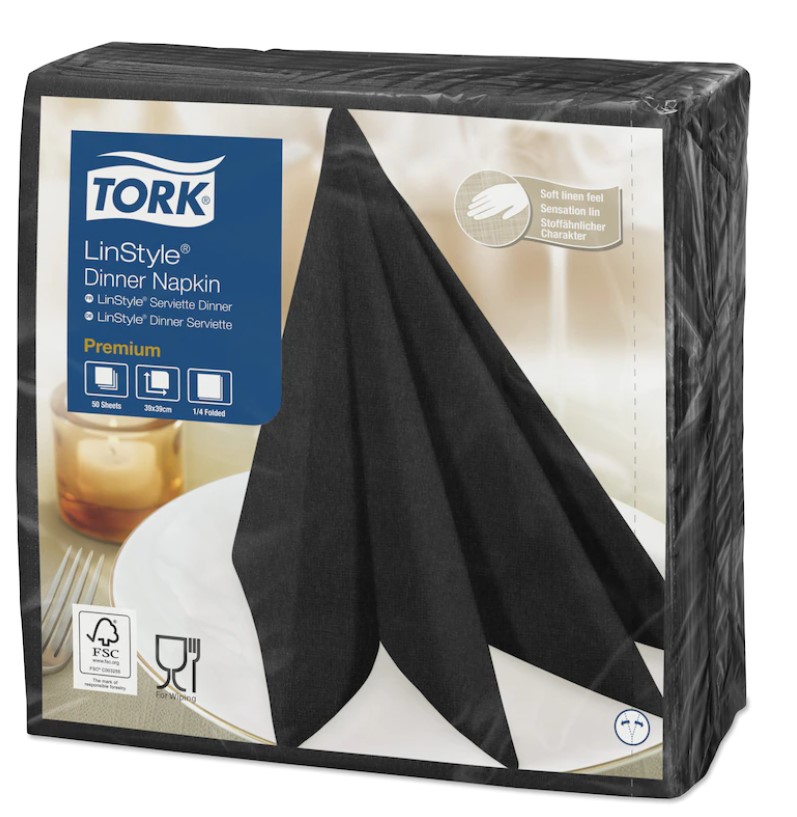 Servetėlės LINSTYLE Dinner, juodos, 39 x 39 cm, 50 vnt, 478726