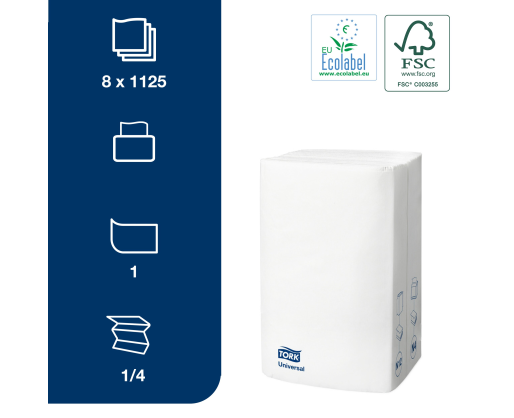 - Stalo servetėlės TORK UNIVERSAL N4, 10840, balta sp., 21.6x33cm, 5 vnt./pak.
