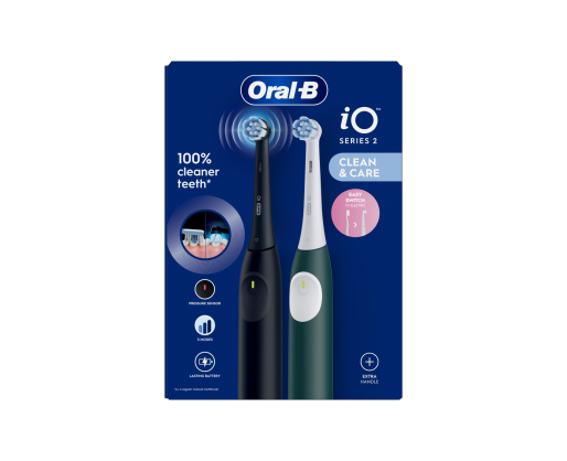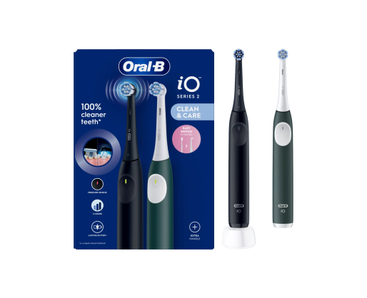 Oral-B Electric Toothbrush, Duo pack | iO2 Series | Rechargeable | For adults | Number of brush heads included 2 | Number of teeth brushing modes 3 | Night Black and Green Forest 606803