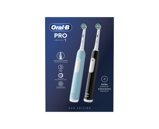 Oral-B | Electric Toothbrush | Pro Series 1 Duo | Rechargeable | For adults | Number of brush heads included 2 | Number of teeth brushing modes 3 | Blue/Black 408128