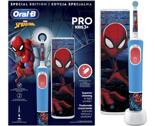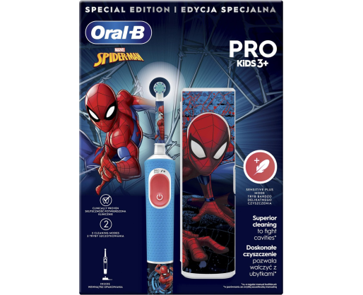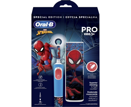 Oral-B Electric Toothbrush with Travel Case Vitality PRO Kids Spiderman Rechargeable For children Number of brush heads included 1 Blue Number of teeth brushing modes 2 408130