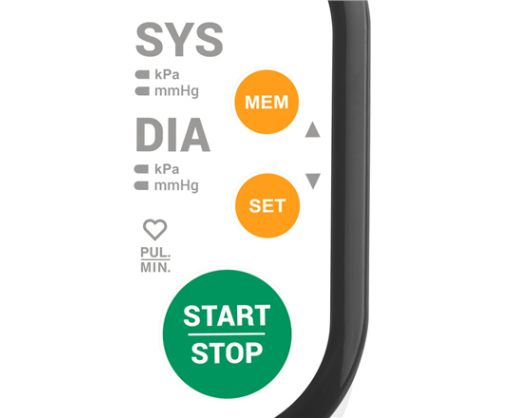 | Kitos savybės | Suitable for home use. Measurement of systolic and diastolic pressure, pulse. Oscillometric measurement method. Display of measured values on LCD. Fully automatic filling and deflation of the cuff. Pressure measurement accuracy +/- 3 mmHg, pulse +/- 5%. Pressure measurement range 0 - 299 mmHg, pulse 40 - 199 per minute. Irregular heart rate detection. WHO blood pressure classification. |