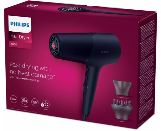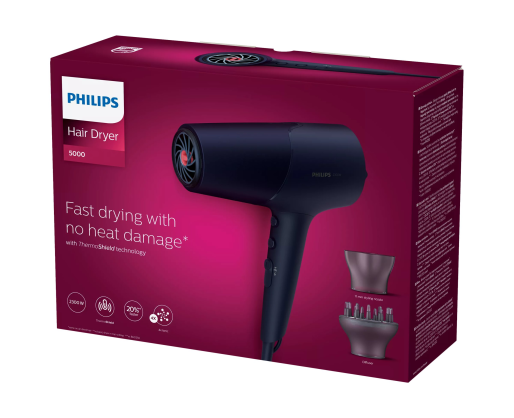 Philips | Hair Dryer | BHD510/00 | 2300 W | Number of temperature settings 3 | Ionic function | Diffuser nozzle | Blue/Metal 350655