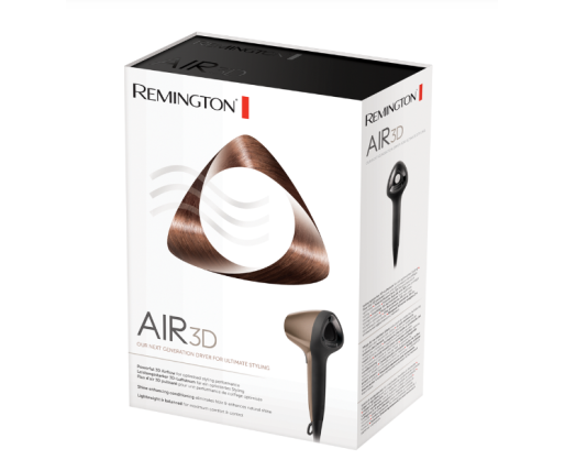 Remington The Salon Collection Air3D Hair Dryer | D7777 | 1800 W | Number of temperature settings 3 | Ionic function | Diffuser nozzle | Brown 452178