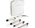 | Priedai pridėti | 19 mm diameter iron, perfect for corkscrew waves; 25 mm diameter iron, perfect for fine waves; 33 mm diameter iron, perfect for beach waves; 13/25 mm conical iron, perfect for spiral curles; Protective travel case |