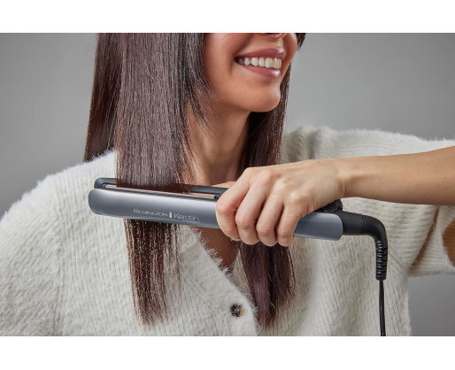 | Kitos savybės | Advanced Keratin and Almond oil ceramic coated plates, for smooth shiny healthy looking hair |