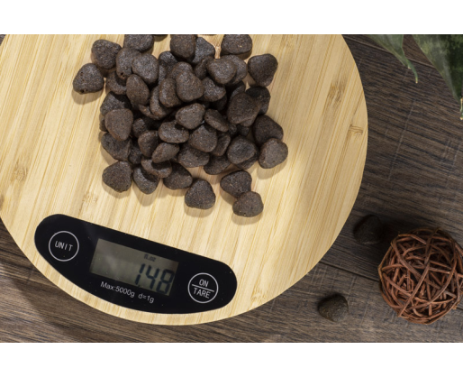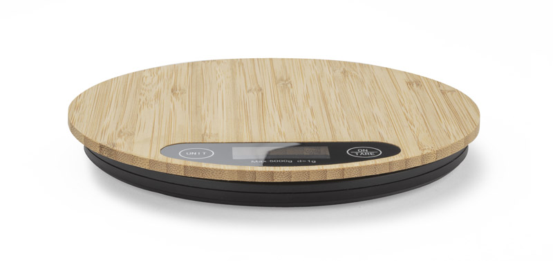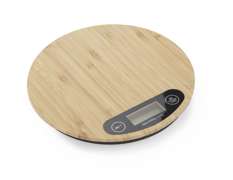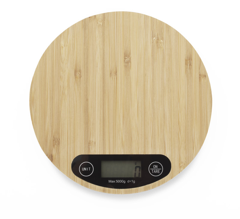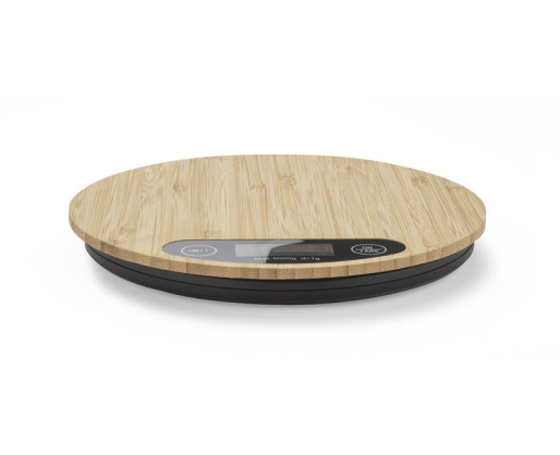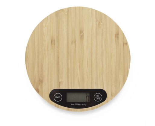 CIRCA elektroninės virtuvės svarstyklės, dekoruotos natūraliu bambuku.