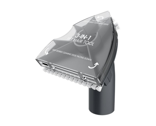 | Kitos savybės | The 3-in-1 Pet Hair Upholstery Tool is perfect for pet hair pick up. This tool rotates and its triangular shape and firm bristles make it easy to reach corners and crevices. Cleans flat surfaces like stairs and furniture cushions. Cleans along edges like furniture arms and stair edges. Cleans into corners like those on steps or between furniture arms and cushions. The 3-in-1 Pet Upholstery tool easily attaches to the Hand Vac or Extension wand for cleaning versatility. |