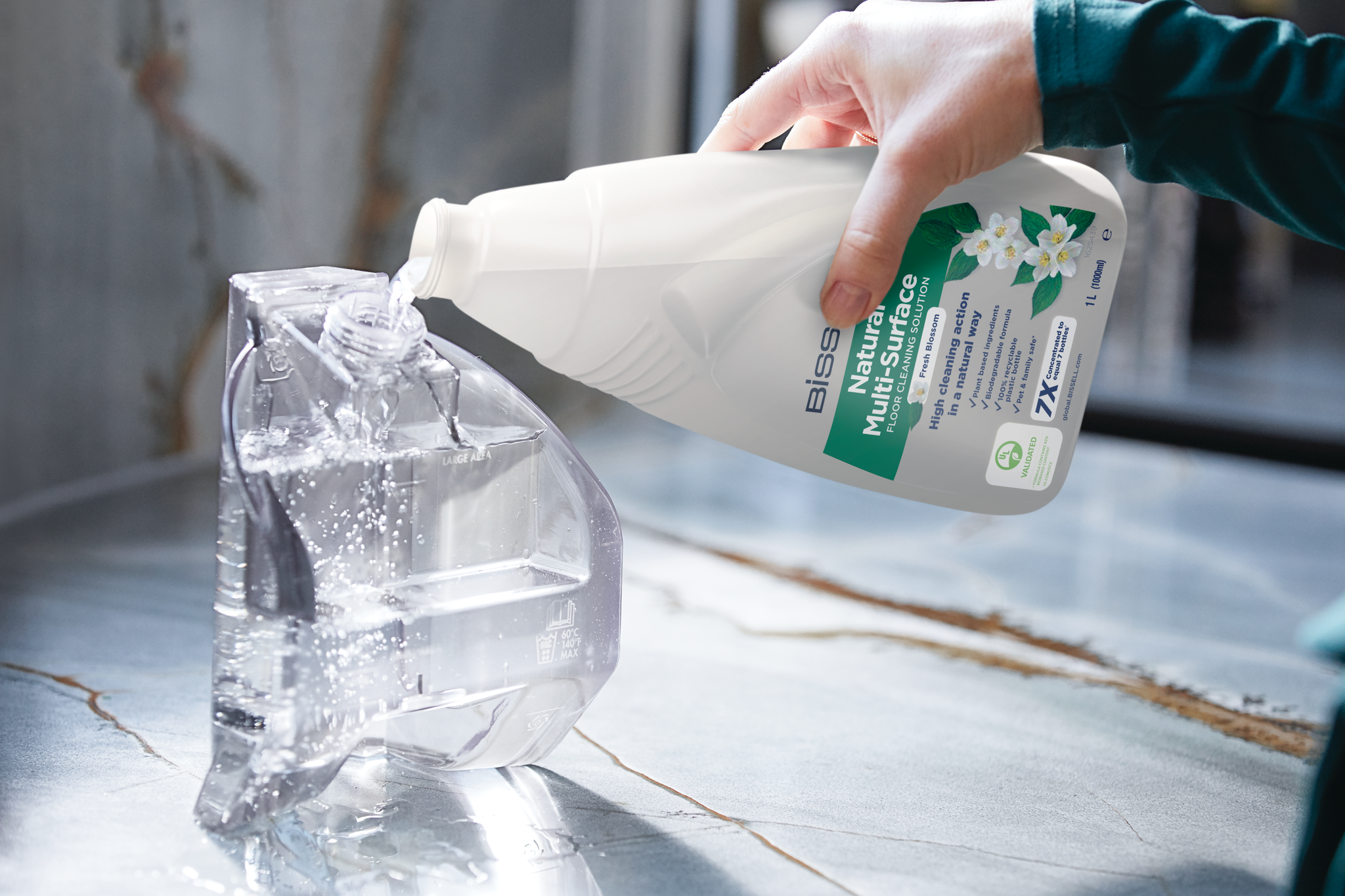 | Kitos savybės | High cleaning action in a natural way, with Plant Based Ingredients and pet & family safe; Biodegradable formula and 100% recyclable plastic bottle; Fresh Blossom Scent |