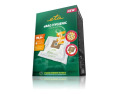 | Kitos savybės | Large volume of 4 litres; Excellent filtration efficiency including the smallest dust particles, such as pollen, mites, etc.; High resistance to vacuumed humidity and piercing by hard or sharp items; Maximised suction power period – service life is longer for up to 50 % when compared to regular bags |