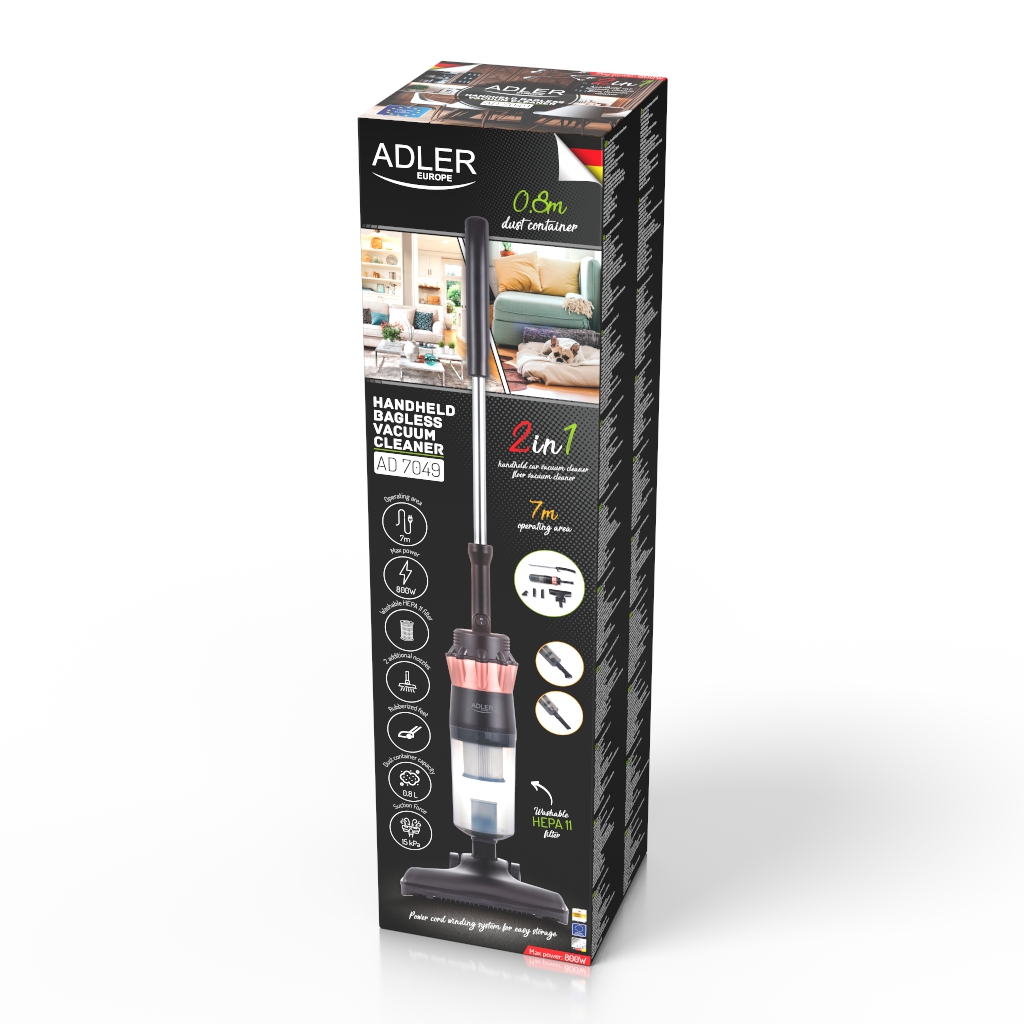 - Adler Vacuum Cleaner AD 7049 Corded operating Handheld 2in1 600 W - V Black Warranty 2...