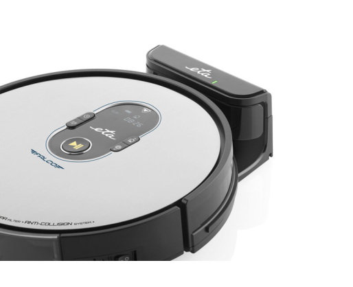 | Specialios funkcijos | The smart ETA SMART application allows you to: Easy setting of cleaning mode - SMART (automatic), CLASSIC (normal), EDGE (along the walls) or SPOT (local); Schedule cleaning for a specific time and day; Electronic regulation of moping intensity (3 levels); Suction power setting (2 levels); Remote control outside your home; Monitoring the activity of the vacuum cleaner and the state of charge of the battery; Manual guidance of the vacuum cleaner; Recording cleaning history including vacuum cleaner route (available in SMART mode). |