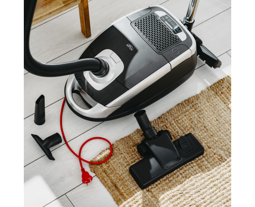 | Kitos savybės | 4 rubber wheels protect your floor from scratches and guarantee exceptional maneuverability; 3-stage filtration system; Thermal protection against overheating |