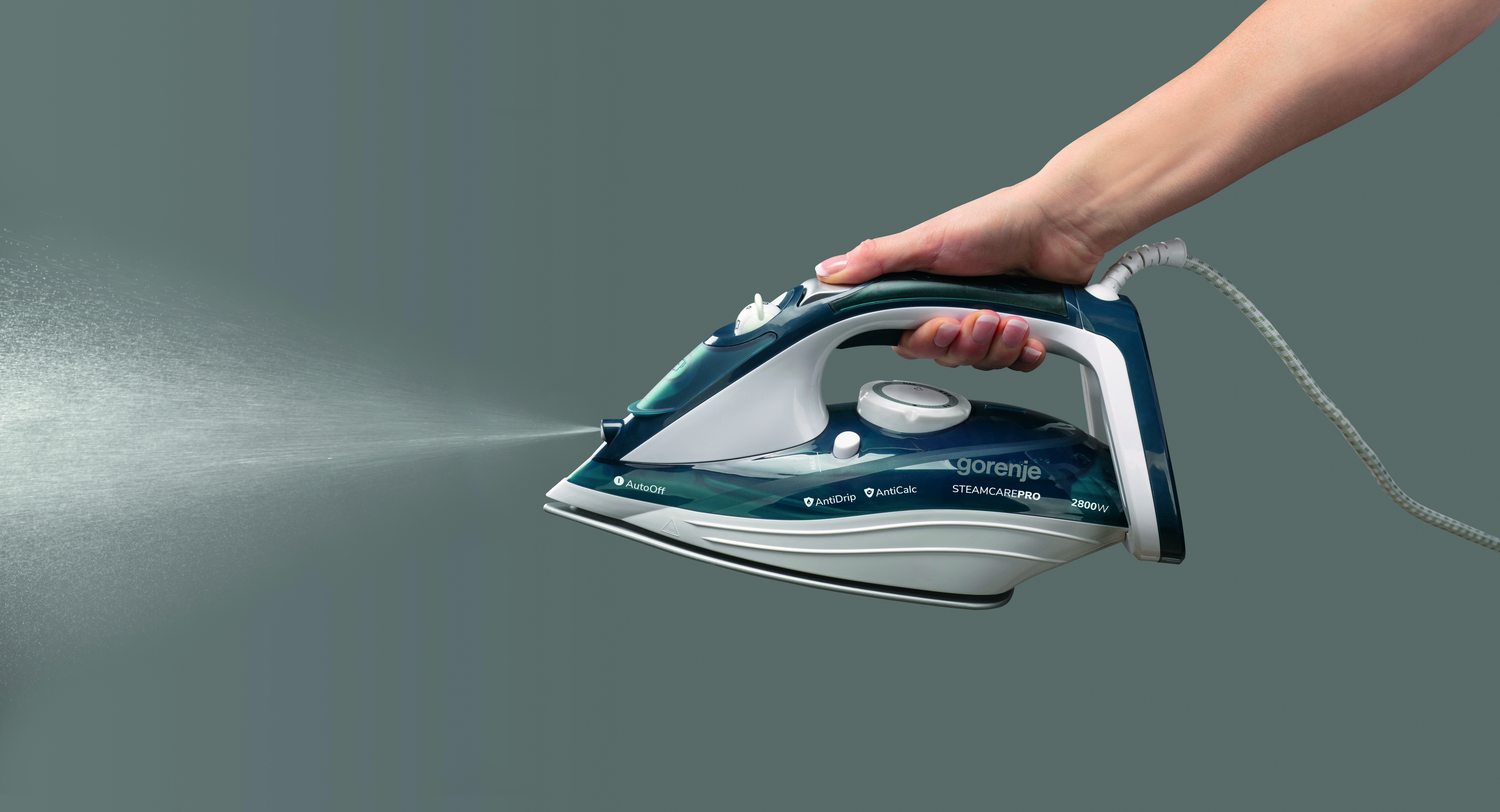 Gorenje | Steam Iron | SIH2800TQC | Steam Iron | Water tank capacity 350 ml | Continuous steam 35 g/min | Power 2800 W | Steam boost performance 100 g/min | Turquoise/White 326612
