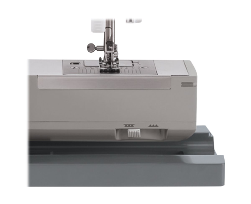 | Kitos savybės | Stainless Steel Bed Plate. Top Drop-in Bobbin. Snap-on Presser Feet. Extra-High Presser Foot Lifter. |