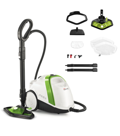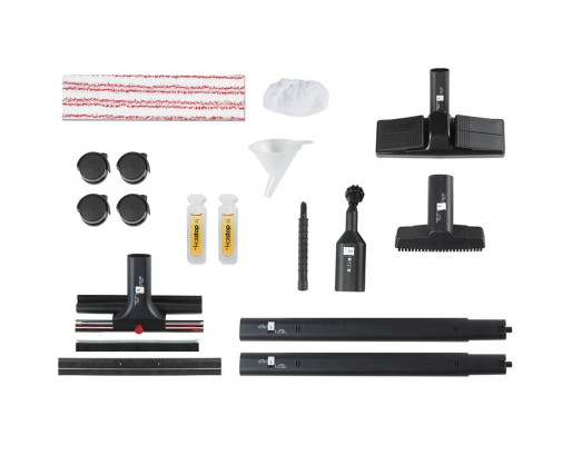 | Priedai pridėti | 9 included accessories: floor and carpet brush, window cleaning brush, small brush, steam concentrator + brush, steam lance, floor cloth, sockette, 2 vials of Kalstop, fabric bag to hold all the accessories. |