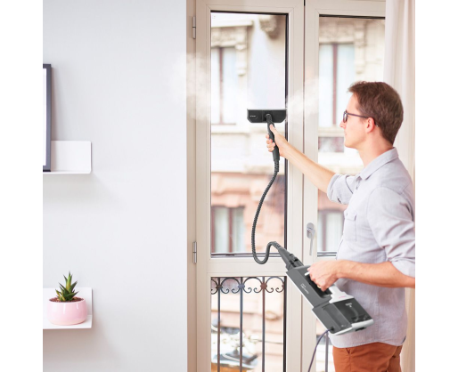 | Priedai pridėti | Flexible steam hose, Triangular brush, Flat lance accessory, Window squeegee, Small rectangular brush with nylon bristles, Small triangular brush with nylon bristles, Small round brush with round bristles, Small round brush with nylon bristles, Carpet/rug frame, Steam concentrator, Steam lance, Parking clip, Replacement limescale filter, 2xFloor cloth, 2xCloth for triangular brush, Sockette for flat lance, Sockette for window squeegee |