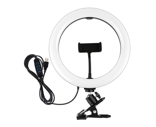 LED žiedinė lempa 26cm, su telefono laikikliu ir spaustuku, USB