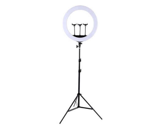 LED žiedinė lempa 45 cm skersmens su trikoju stovu reguliuojamu iki 2.1metrų aukščio.Ypatybės: