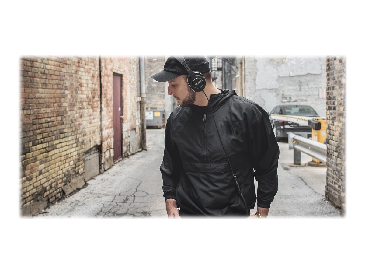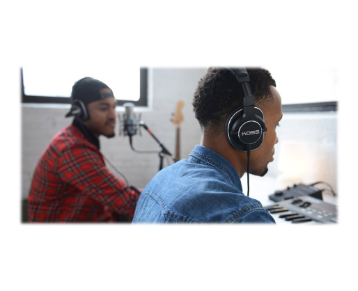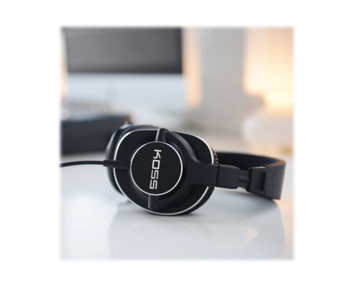 | Kitos savybės | •Full-size, over-ear Studio headphones •D-profile with memory foam cushions •Koss SLX40 Elements tuned for studio reference •Detachable cord with dual choice entry •Fold flat for portability •Carrying case |