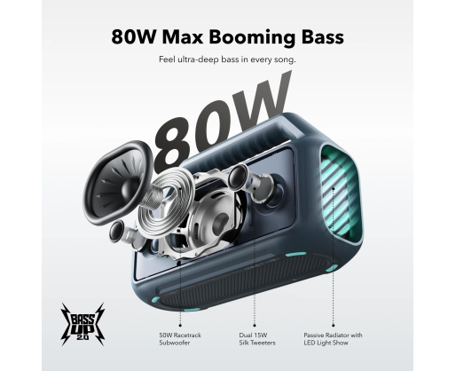 - Anker Soundcore Speaker | Boom 2 | 80 W | Waterproof | Bluetooth | Blue | Portable | Wi...