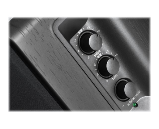 | Specialios funkcijos | Front bass reflex port; Wireless remote for easy control; Soundfield Spatializer; Removable Grill; Classic Wood Finish; Convenient dials on the side panel of the speaker to adjust the bass, treble, and volume |