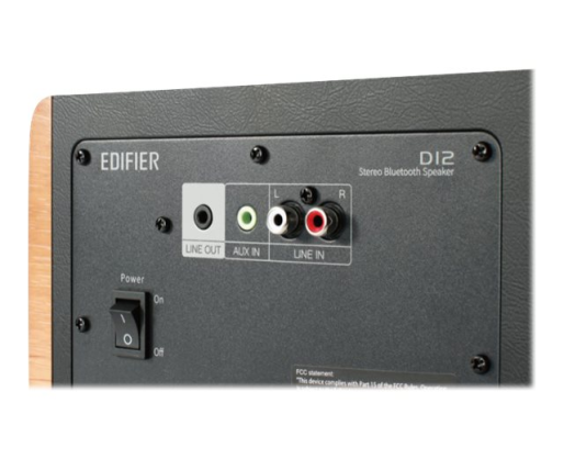 | Specialios funkcijos | Easy to set up and compact in size, the D12 speaker can be placed in your living room, study room, dining room, or bedroom; The speaker casing minimizes acoustic resonance and produces an excellent sound; Featuring an RCA/AUX input port for versatile connectivity to external devices such as TV, turntable, DVD, and a line out if you ever want to add an extra subwoofer or active speakers |