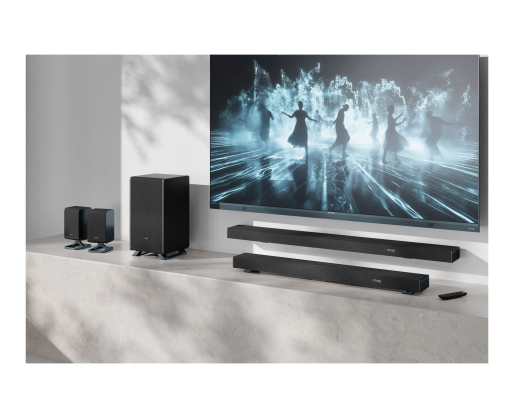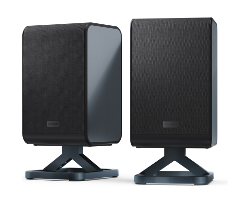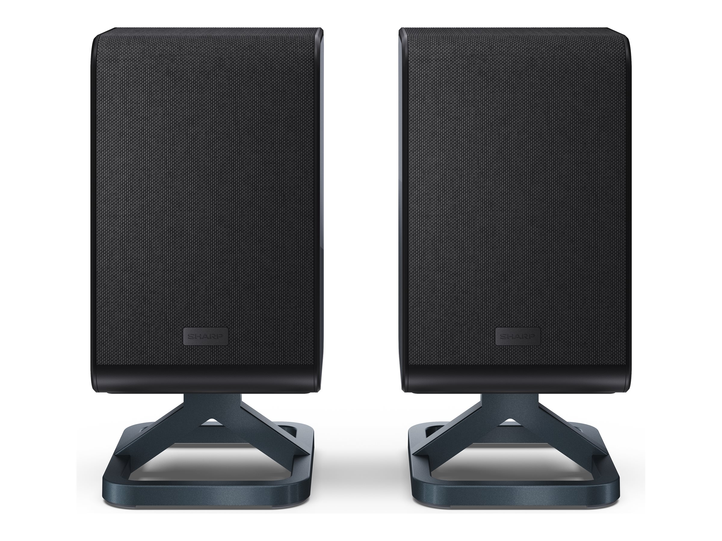 | Kitos savybės | Upfiring speaker drivers reflect sound from the ceiling adding height to the sound stage; Simple and quick wireless connection directly to Sharp “Q” soundbars; Wall mount or table top positioning |
