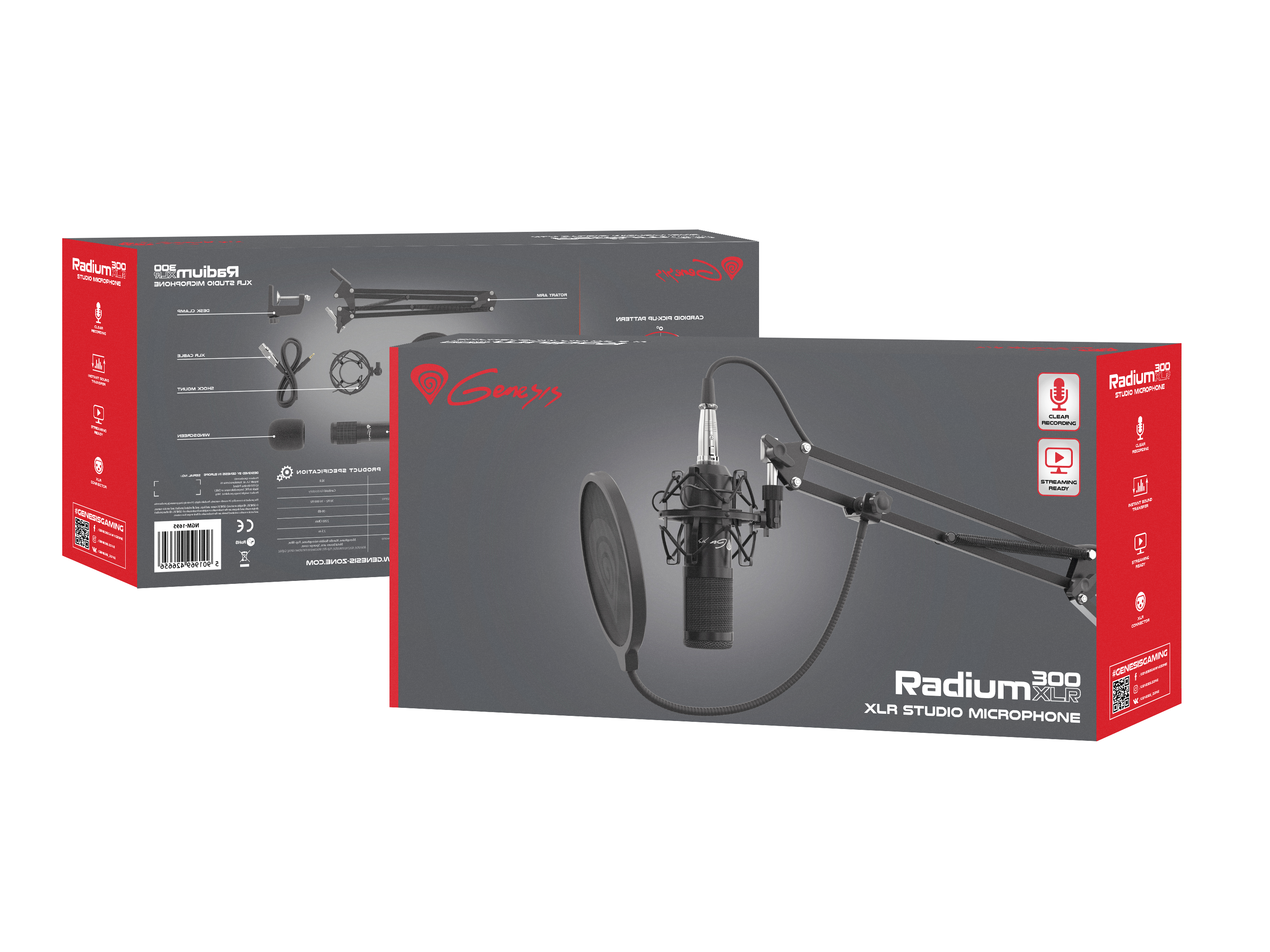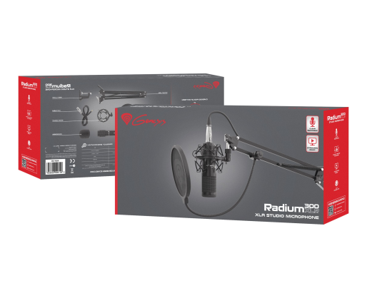 | Package content | Gaming Microphone Radium 300; Metal arm; Basket; Pop filter; Sponge cover; XLR cable - 3.5 mm minijack |