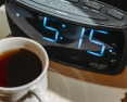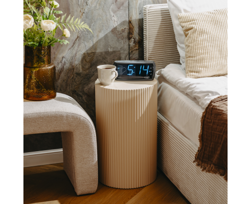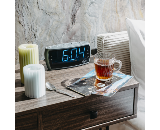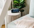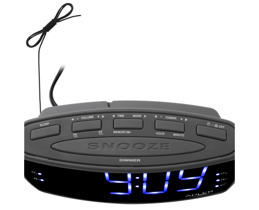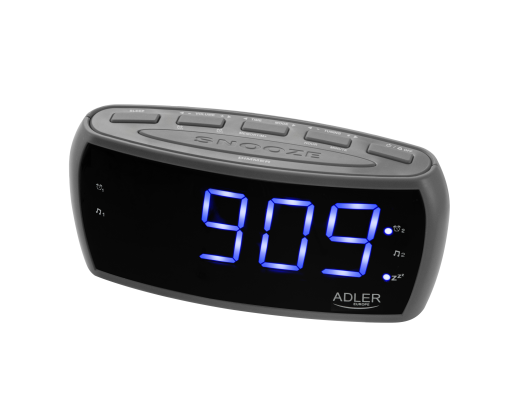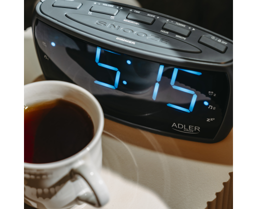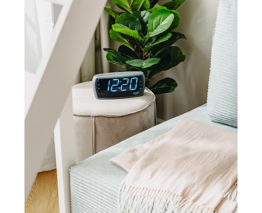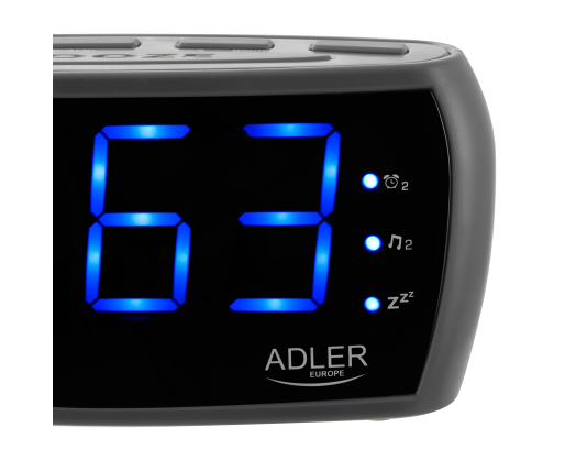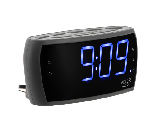 | Kitos savybės | 1.8-inch clock radio with red LED; Digit height 48 mm; 24-hour LED display; Double alarm; AM/FM digital radio; 10 preset memory stations |