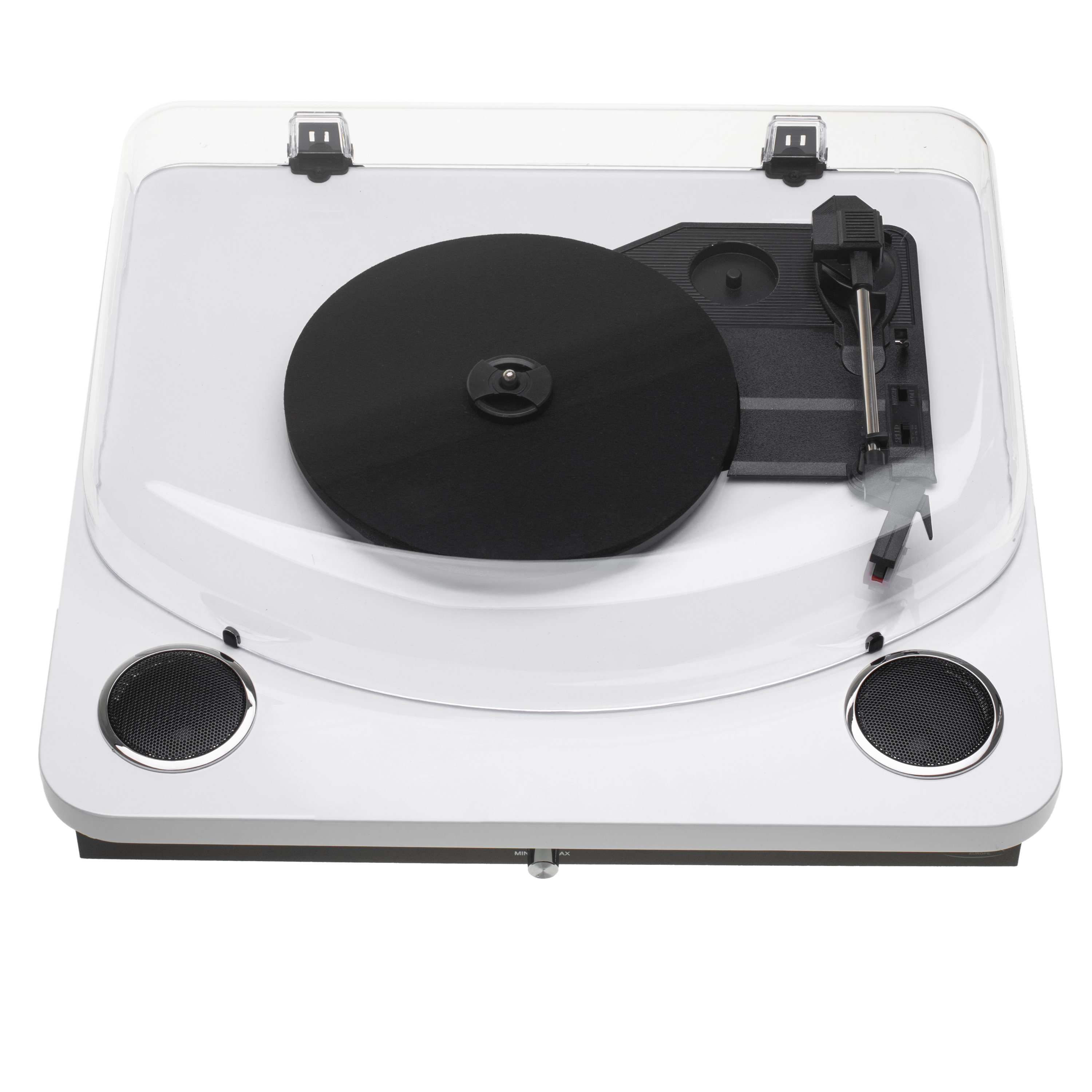 | Kitos savybės | Three-speed playback - plays records at 33 1/3, 45, and 75 RPM, allowing you to enjoy your entire vinyl collection; Built-in stereo speakers - 2 x 0.8 W power ensures clear and enjoyable sound; High-quality ceramic cartridge - ensures precise sound reproduction and longer lifespan |