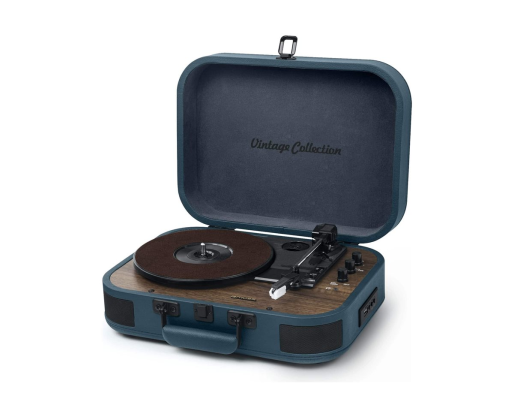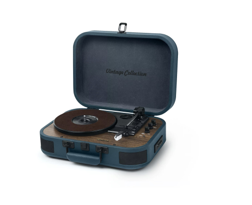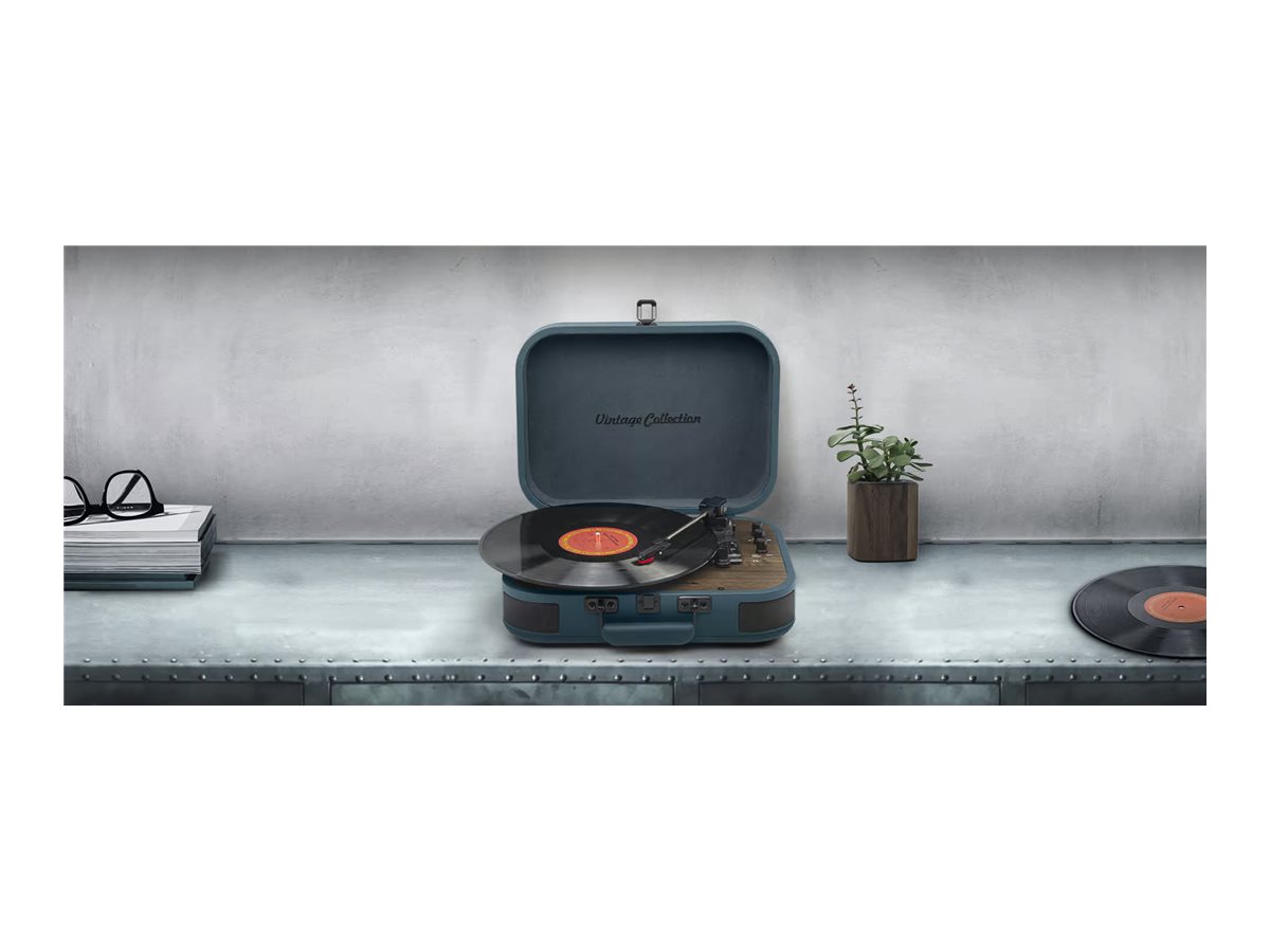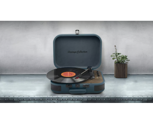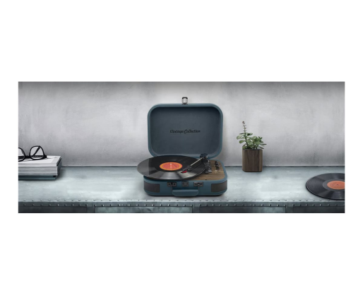| Kitos savybės | 3 speeds stereo turntable 33/45/78 RPM; Auto-stop ON/OFF switch; 2 built-in speakers |