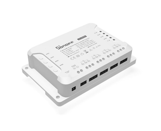 Išmanusis 4 kanalų jungiklis elektros prietaisams, palaikantis valdymą nuotoliniu būdu per Wi-Fi 2.4GHz ir RF 433MHz; skirtas įvairiai buitinei technikai.
