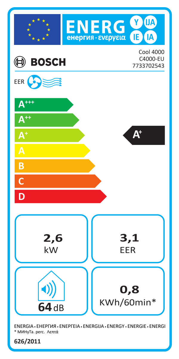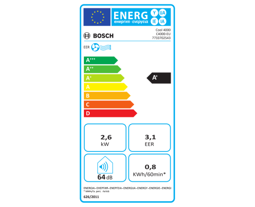 | Kitos savybės | Choose from three fully automated climate control modes to suit your daily situation (Bosch Easy Cool Select); Automatic oscillation moves up and down to disperse cool air streams; With automatic oscillation, you will quickly reach the desired room temperature; Generally environmentally friendly – R290 refrigerant is a natural refrigerant with a low global greenhouse gas potential; The intuitive display and remote control with timer function ensure the simplest operation; Integrated handles and wheels make it easy to transport around the house; Humidification – removes up to 50 liters of water from the air every day |